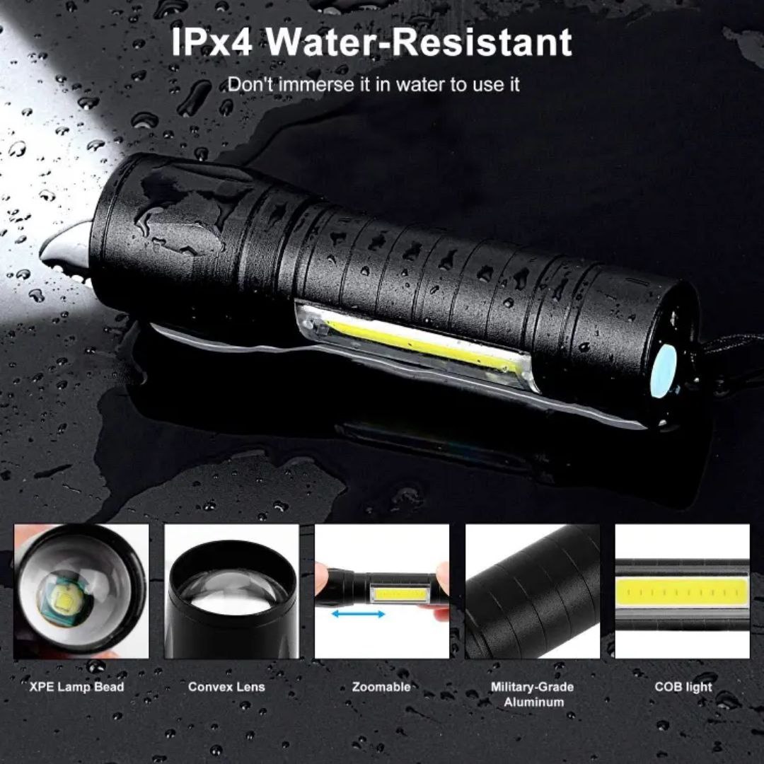 USB Charging Powerful Flashlight 3800LM XPE COB LED Flash Light Torch Light