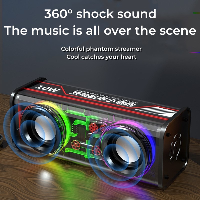 3. Unique Transparent Mecha Design: The portable speaker’s unique design allows for a visually stunning experience with a multidimensional effect that enhances the overall sound quality.